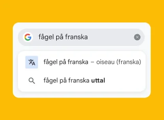 Få resultat direkt när du ber om att översätta ord eller korta fraser genom att skriva ”[ord] på [språk]”.